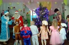 Сегодня провели новогодний утренник. В гостях у детей побывали Дед Мороз, Снегурочка, Серый волк, Зима. Сказочные герои проводили для детей игры, водили хоровод, пели новогодние песни. В сказочной атмосфере интересно прошел новогодний праздник. Дети получили от Деда Мороза сладкие подарки и раскраски.