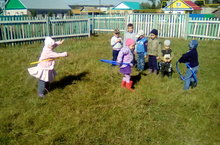 На свежем воздухе Алексеева О.В. с детьми провела "Весёлые старты" с обручем, мячами, скакалками. Дети были очень рады соревнованию и осеннему солнечному дню.