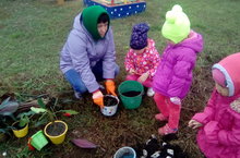 Воспитанники детсого сада помогали младшим воспитателям пересаживать комнатные цветы. Дети учились правильно по размеру определять размеры кашпо и повторили названия комнатных растений.