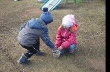 Прогулка 24.03.2014 Дети с удовольствием работали на участке- выкапывали малые формы...