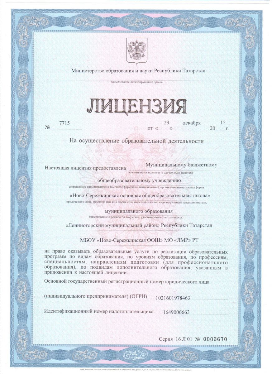 Муниципальное бюджетное общеобразовательное учреждение «Ново-Сережкинская основная общеобразовательная школа» муниципального образования "Лениногорский муниципальный район" Республики Татарстан