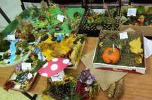 11 октября была подготовлена и оформлена выставка поделок из природного материала «Осенний переполох». Обучающимися были представлены работы, выполненные из природного материала в различных техниках. Сколько творчества, выдумки, фантазии было в каждой работе! Поделки получились очень оригинальные и разнообразные. Учащиеся с интересом рассматривали экспонаты выставки и с гордостью рассказывали о своей поделке. К изготовлению поделок участники выставки отнеслись серьезно и вложили много фантазии, терпения и труда!