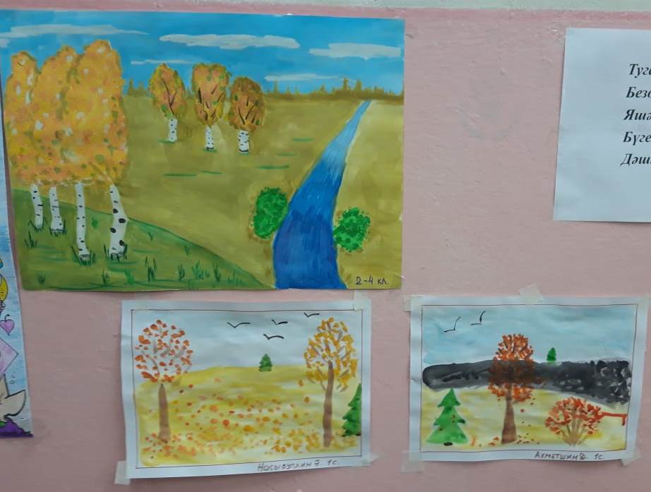 1-9 сыйныф укучылары арасында "Көзге табигать", "Көзге муллык", "Көзге матурлык" дип аталган рәсем күргәзмәсе үткәрелде.