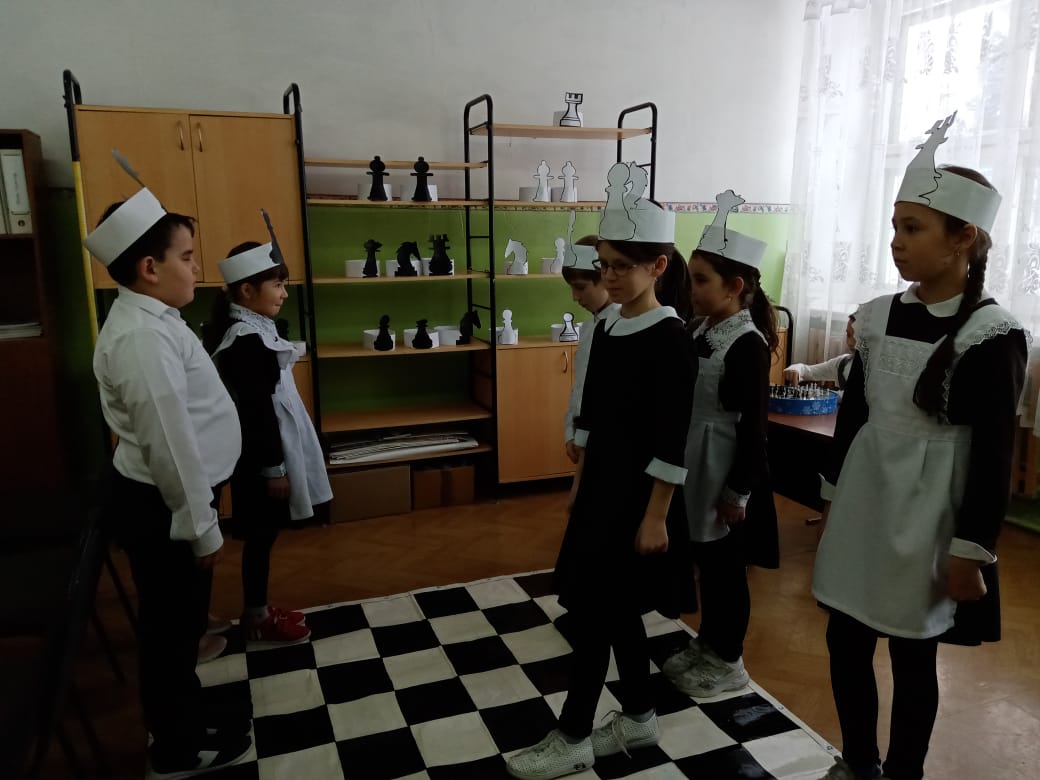 Тәнәфесләрдә һәм дәрестән тыш дәресләр вакытында балалар шахмат фигураларыннан сакланырга, шахмат фигураларының көчен билгеләргә өйрәнәләр, шахмат уенының төп принциплары белән танышалар.