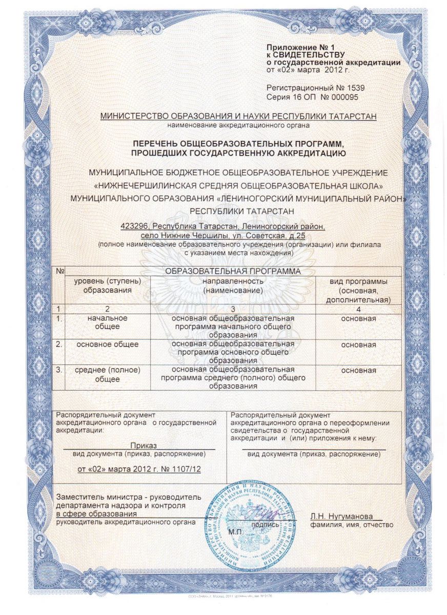 Муниципальное бюджетное общеобразовательное учреждение «Нижнечершилинская основная общеобразовательная школа» муниципального образования "Лениногорский муниципальный район" Республики Татарстан