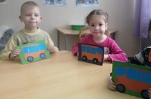 Материалы и оборудование: игрушечный автобус, иллюстрации автобус, дорога и пр., бумага размером ½ альбомного листа для основы (фона), набор цветной бумаги (прямоугольные полоски, квадраты, прямоугольники), ножницы, клей, салфетки.
