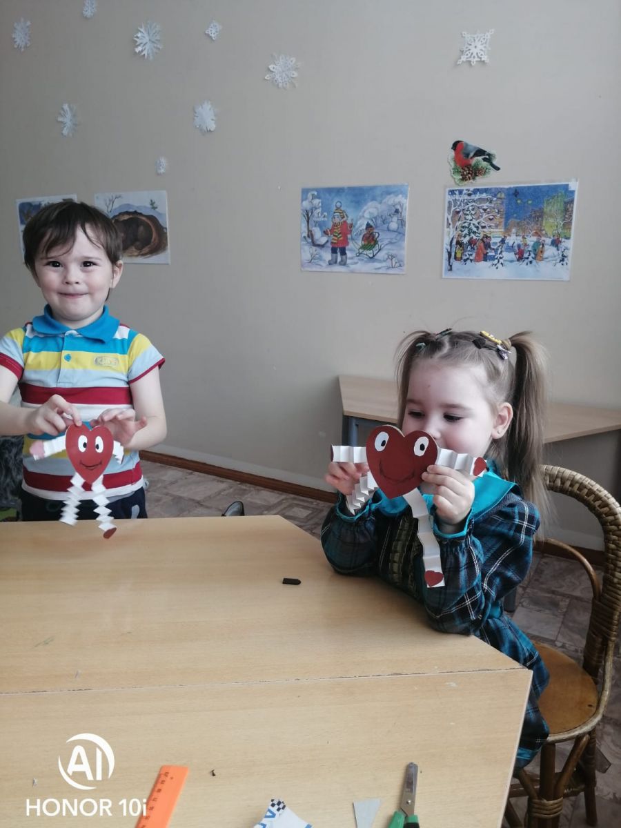 Сердечки к 14 февраля. Цели и задачи: расширять знания детей о праздновании дня Святого Валентина; закрепить полученные умения и навыки работы с бумагой и картоном; воспитывать чувство доброты и душевной щедрости; обратить внимание на эстетические требования к качеству изделия сувенирного характера; воспитывать художественные и эстетический вкус; воспитывать аккуратность, усидчивость, трудолюбие; продолжать учить работать по образцу, внося элементы творчества; изготовить "валентинку" по предлагаемому образцу.