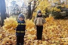 На прогулке детский сад. Сегодня вышли посмотреть на красоту желтых листьев, собрать гербарий для будущих работ.