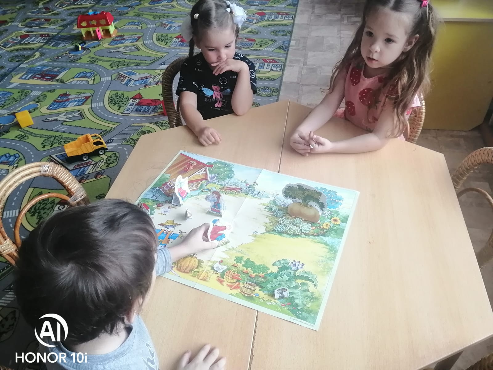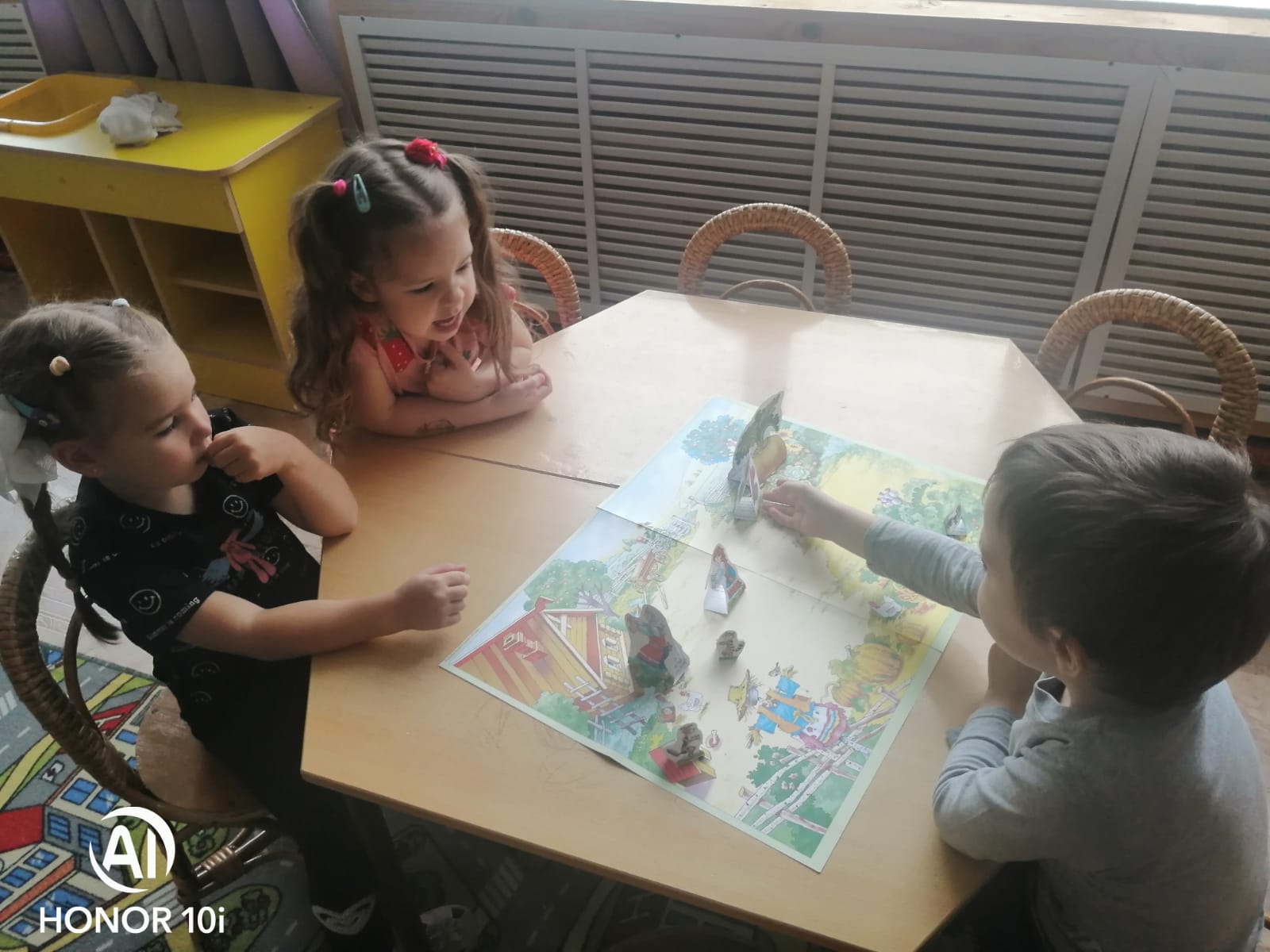 Театрализация сказок с игровым полем и персонажами.