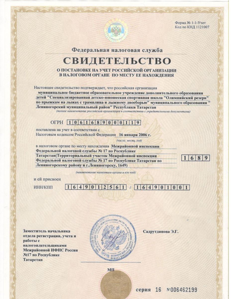 СВИДЕТЕЛЬСТВО О ПОСТАНОВКЕ НА УЧЁТ РОССИЙСКОЙ ОРГАНИЗАЦИИ В НАЛОГОВОМ ОРГАНЕ ПО МЕСТУ ЕЁ НАХОЖДЕНИЯ