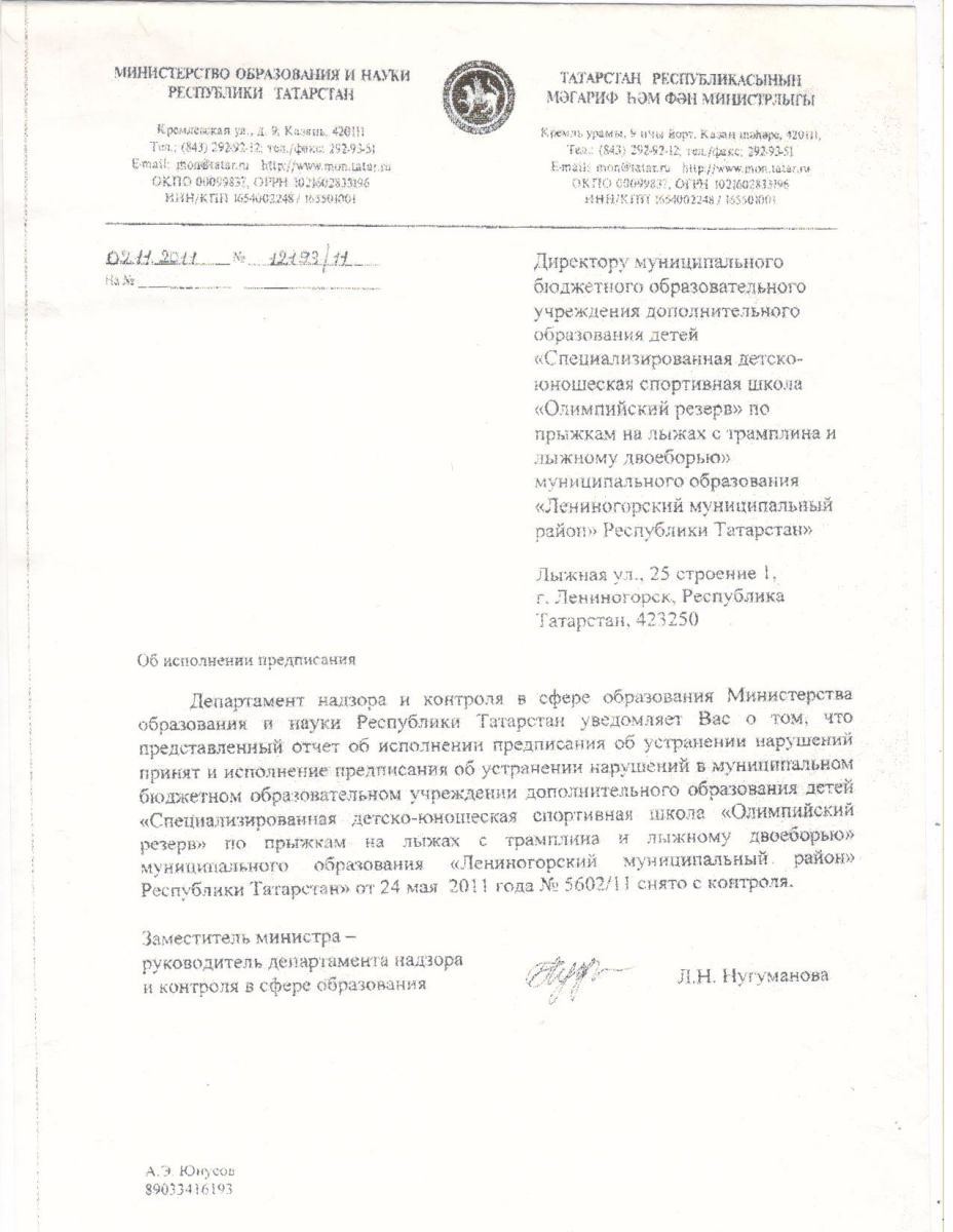 ПРЕДПИСАНИЕ ДЕПАРТАМЕНТА НАДЗОРА И КОНТРОЛЯ В СФЕРЕ ОБРАЗОВАНИЯ ОБ УСТРАНЕНИИ НАРУШЕНИЙ
