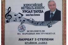 Подравляем Крайнова Данила, лауреата III степени в номинации исполнители на народных инструментах (гитара), преп. Гуменюк М.В,