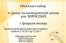 НАБОР В ГРУППУ НА КОММЕРЧЕСКОЙ ОСНОВЕ ДЛЯ ВЗРОСЛЫХ 02.02.2022