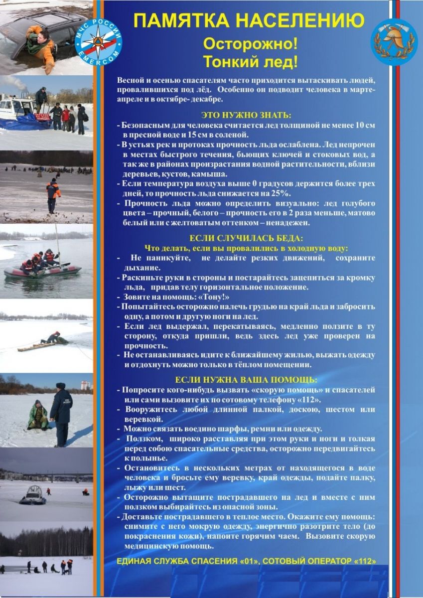 ПАМЯТКИ. ОСТОРОЖНО, ТОНКИЙ ЛЕД. ГО и ЧС.