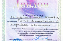08.05.2015 23-го апреля я со своим мастером Медведевой И.П. ездили на конкурс в город Казань (олимпиада) профессионального мастерства среди токарей. Прибыв на место проведения конкурса, в колледж, мы зарегистрировали себя без проблем, нам объяснили, что, когда и зачем будет. Никаких проблем не было, всё было чётко спланировано и реализовано. На вступительной части нас всех поприветствовали в зале и пожелали удачи. Далее нас покормили. Их столовая могла похвастаться хорошим и причем вкусным предложением блюд. Особенно понравились обслуживающие столовую, очень добрые и отзывчивые, будто мы знакомы уже пару лет.