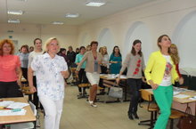 18.08.2015 в СОШ № 8 прошло заседание секции учителей английского языка в рамках Августовской конференции педагогических работников. По результатам работы за год 9 учителей были награждены грамотами Управления образования. В рамках работы секции были рассмотрены вопросы подготовки учащихся к ОГЭ (письменная часть), ЕГЭ (устная часть), система работы с текстом, применение сингапурских обучающих структур на уроке, работа на проектом на уроке английского языка. Работа секции была организована в виде тренинга. что обеспечило участие каждого учителя.