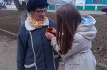 Сегодня стартовала ставшая традиционной акция "Георгиевская ленточка". Она объединяет миллионы людей не только в России. Участие в ней принимают более 70 стран. Ребята школы №3 уже начали раздавать символ победы. Как и положено, его крепят слева. Многие просят у волонтеров не одну, а две-три ленты. Их подарят ветеранам, детям или просто друзьям. -