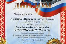 На зимних каникулах, в период с 4 по 8 января, сборная команда МАОУ «Средняя общеобразовательная школа №2» представляла наш город на Международной олимпиаде «Эрудиты планеты», которая проводилась в Москве. В этой олимпиаде принимали участие команды из пяти стран. Наша сборная «Проспект энтузиастов» заняла II место среди юниорской группы и получила памятные призы, дипломы, кубок.