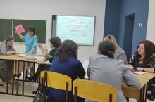 20.04 2022 в МБДОУ Тимяшевский детский сад - Ласточка " прошёл семинар для воспитателей сельских ДОУ на тему" Роль инновационных технологий в развитии творческого личностного потенциала детей" в рамках которого педагоги познакомились с игровой гимнастикой по методике Е. С. Железновой, побывали вместе с детьми 2 мл группы на дне рождения у Бабы Капы, провели опыты с детьми средней группы в лаборатории профессора Удивляйкина. Очень весело и эмоционально прошёл мастер- класс 'Палитра эмоций' по программе развития личностного потенциала "Вклад в будущее"