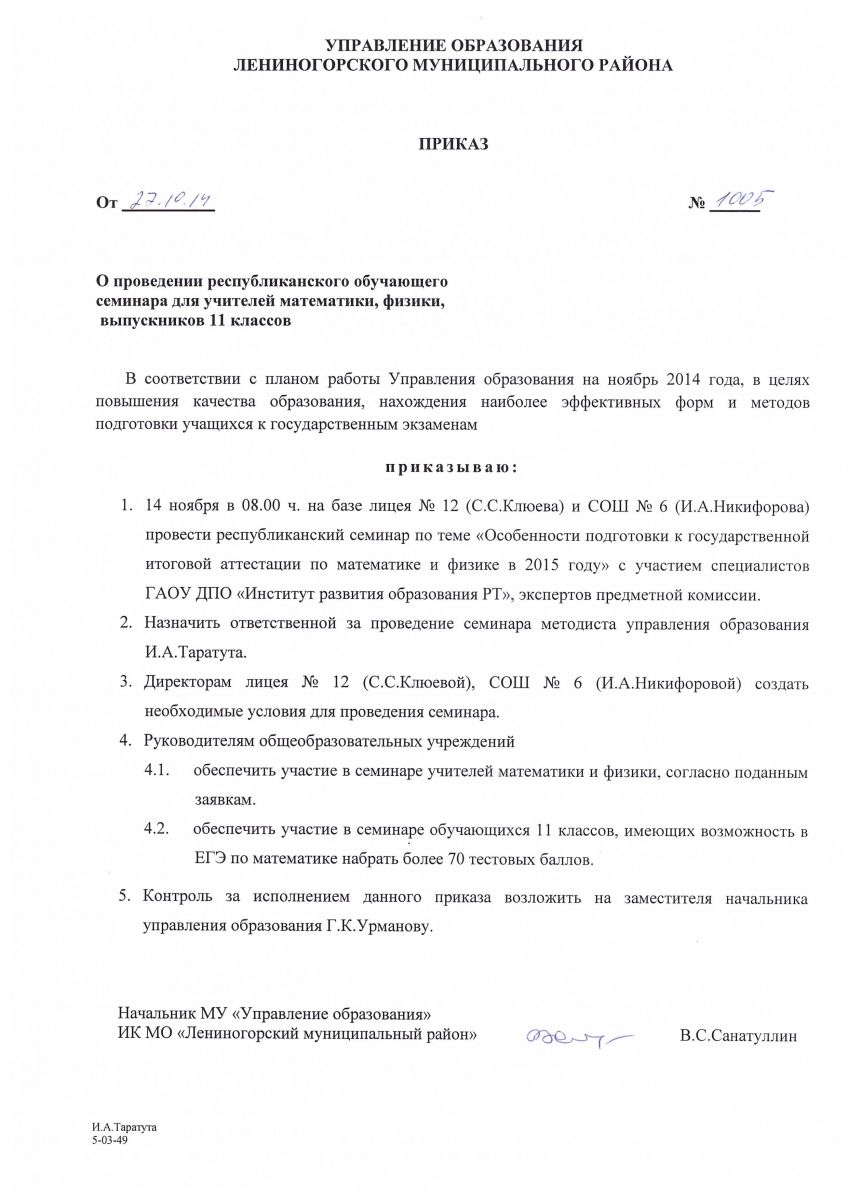 | Короткое название: | МКУ "Управление образования" ИКМО "ЛМР" РТ |