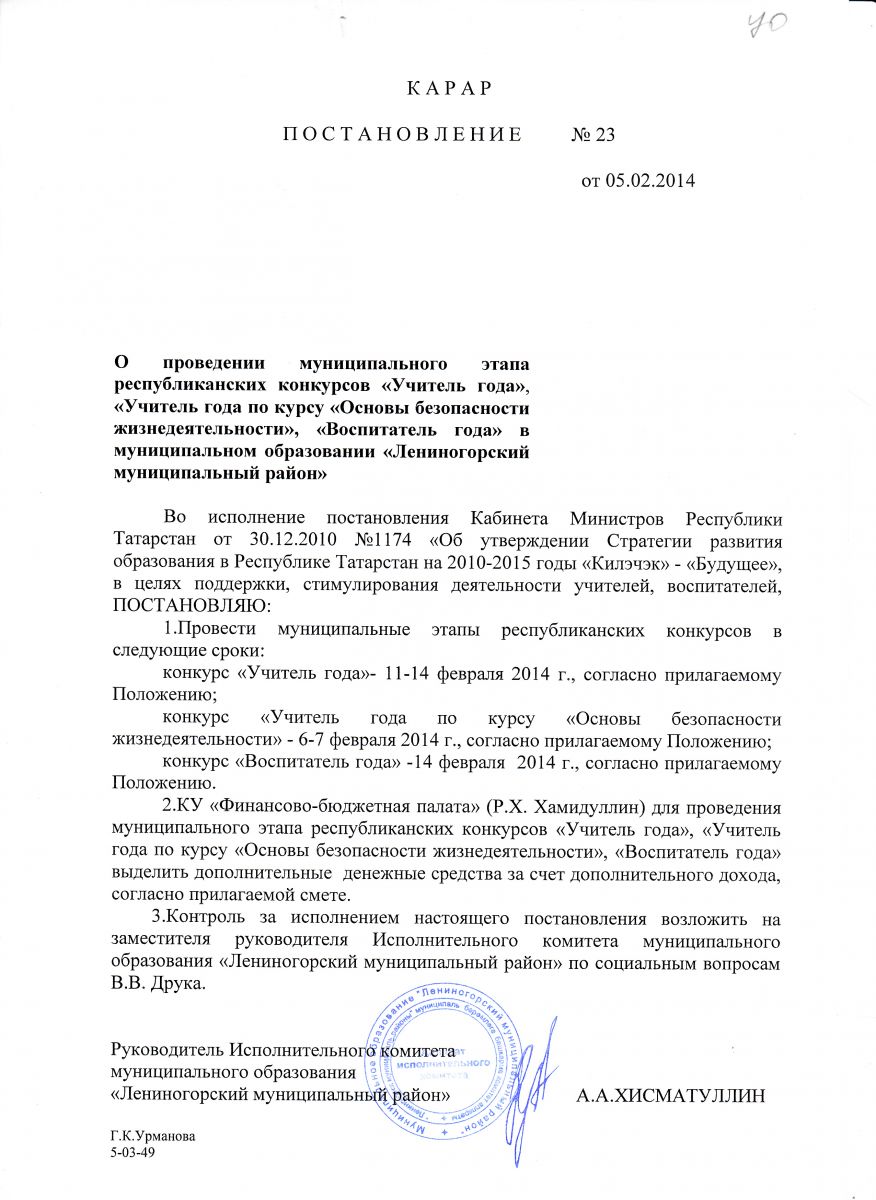 Приказ №134 О проведении муниципального этапа конкурса «Учитель года - 2014».