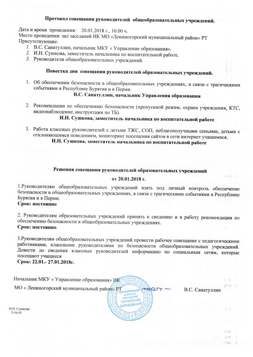 Протокол совещания руководителей ОУ 20.01.2018г.