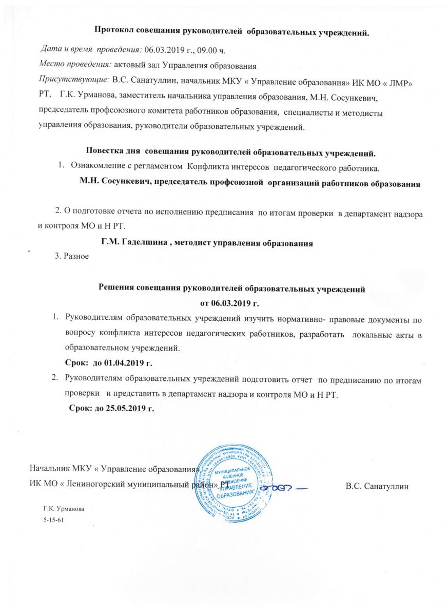 Протокол совещания руководителей ОУ 06.03.2019г.