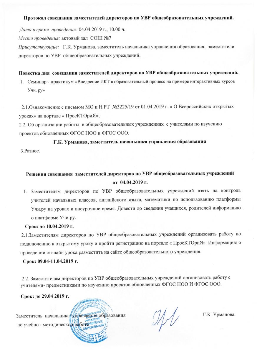 Протокол совещания ЗДУВР 04.04.2019г.