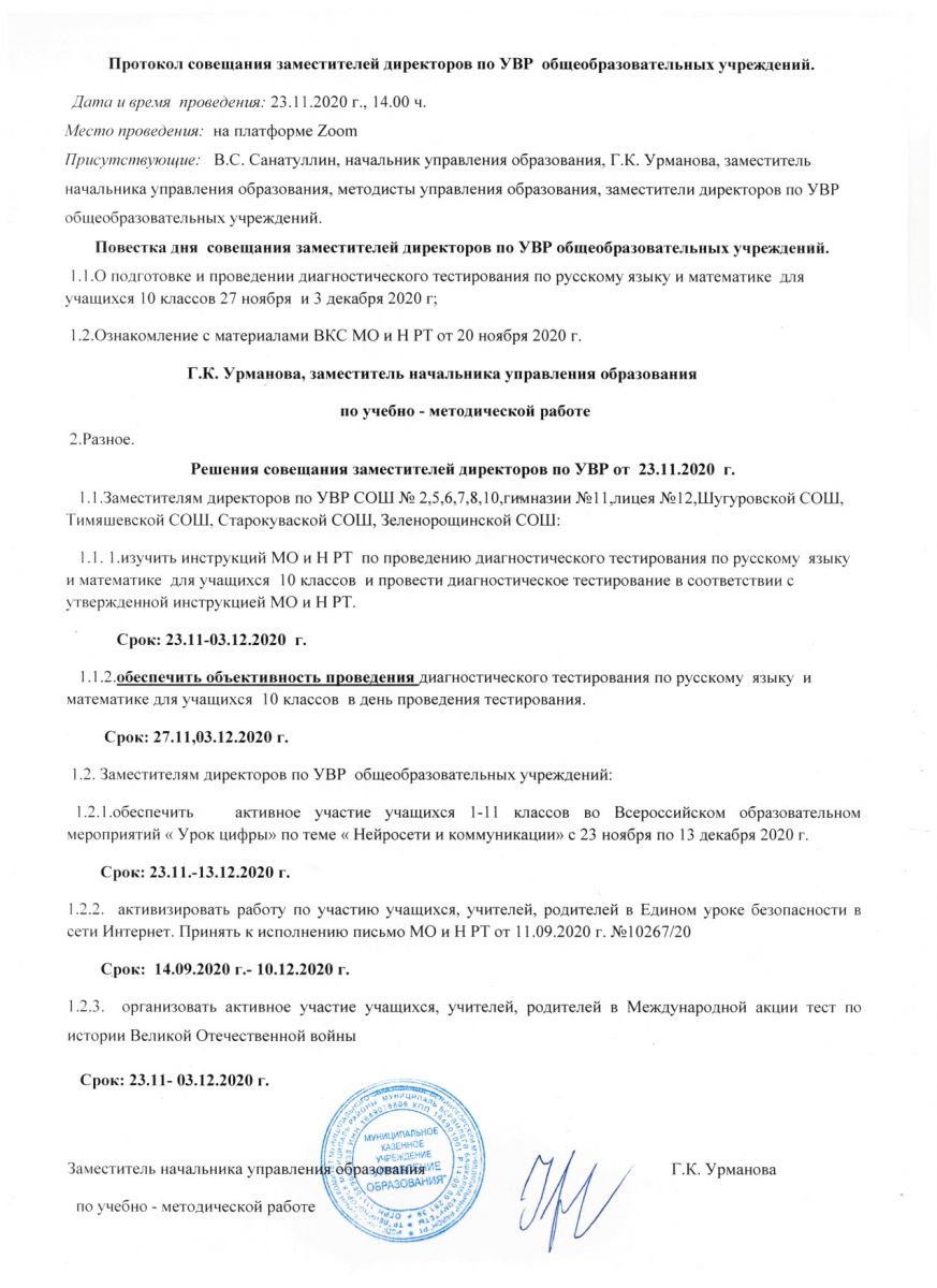 Протокол совещания ЗДУВР от 13.11.2020г.