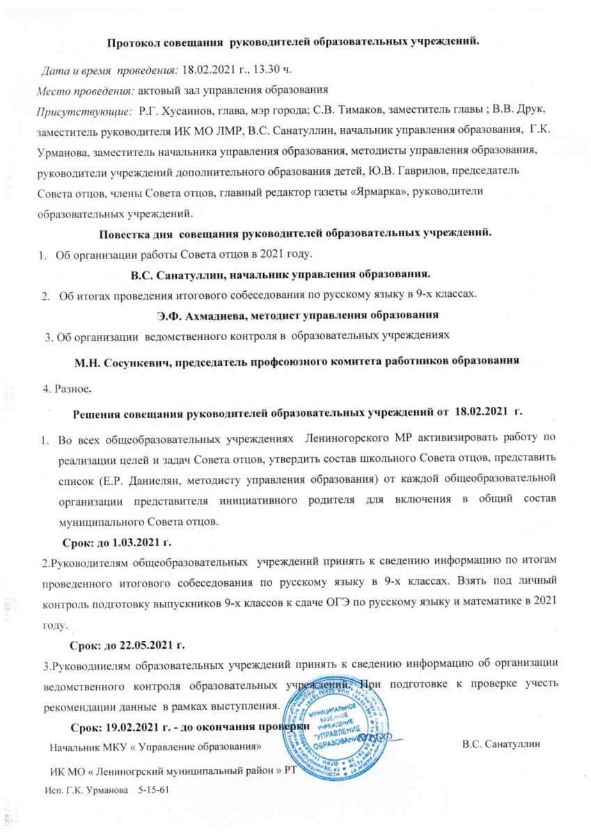 Протокол совещания руководителей ОУ 19.11.2020 г.