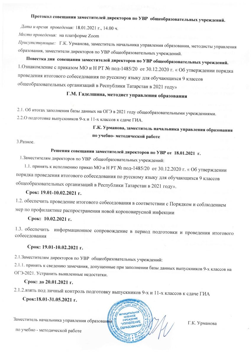 Протокол совещания заместителей директоров по УВР 17.05.2021 г.