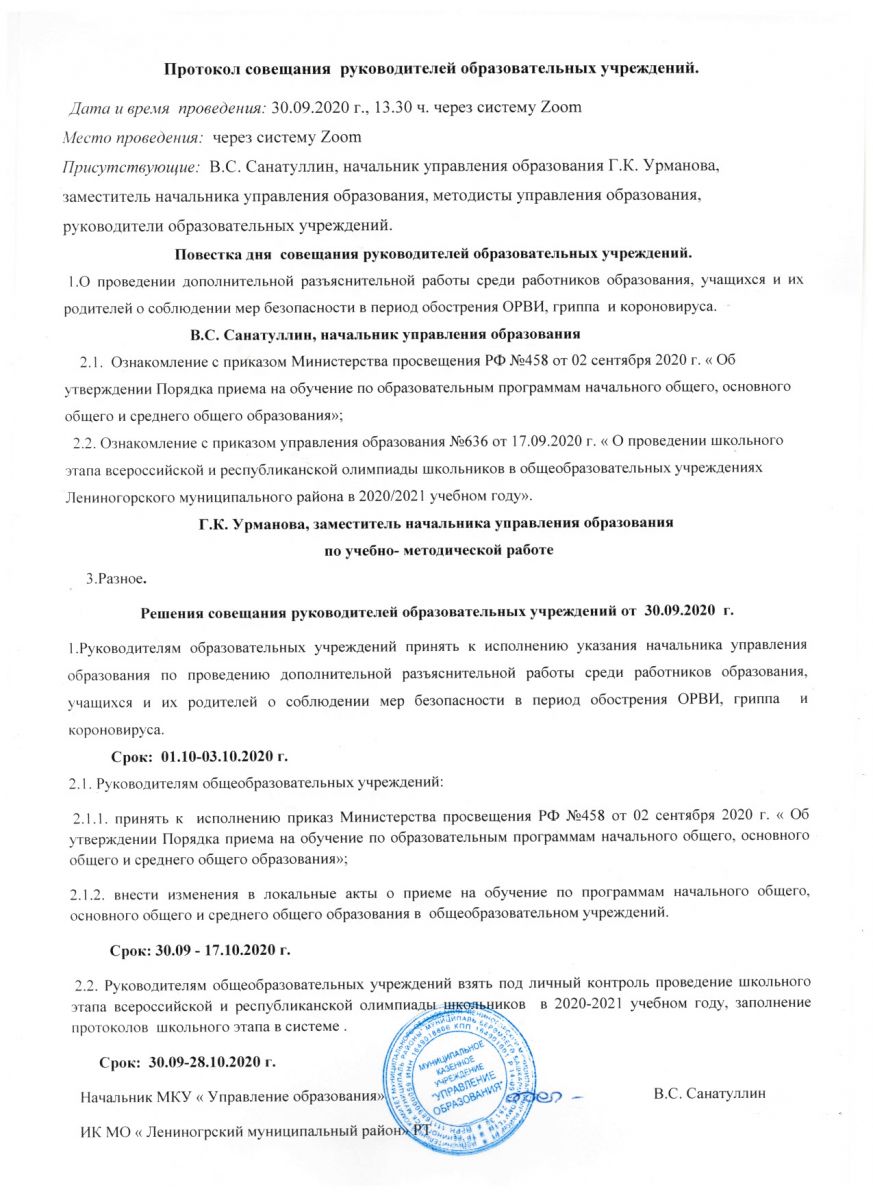 Протокол совещания руководителей ОУ 30.09.2020г.