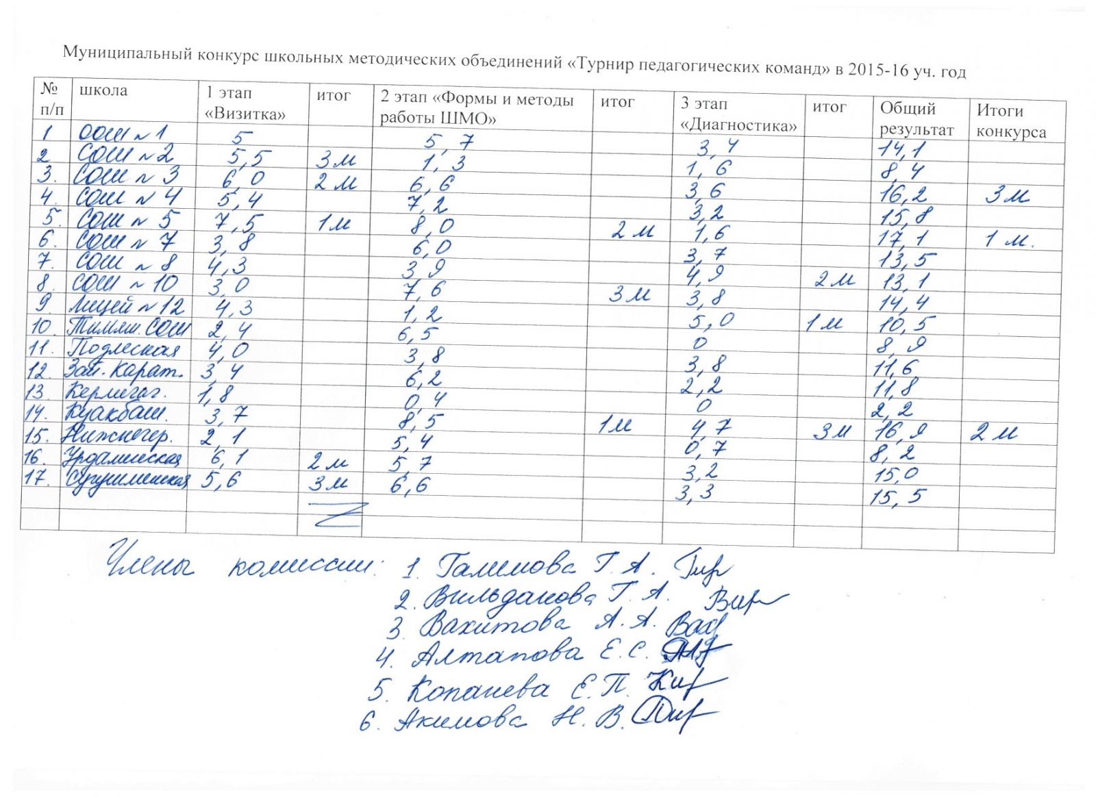 Протокол Муниципального конкурса "Турнир педагогических команд"