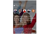 18 мая 2020 года прошёл Республиканский вебинар на тему «Деятельность детских общественных организаций в контексте социально-педагогической направленности», организованный ГБУДО «Республиканский центр внешкольной работы» совместно с ТРО ООГДЮО «Российское движение школьников», в которой приняла участие методист по работе с детскими общественными организациями МБУДО «Дом детского творчества» Гильмутдинова А.Р.