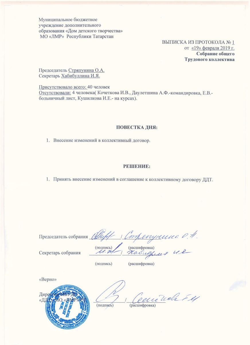 Выписка из протокола №1 от 19.02.2019