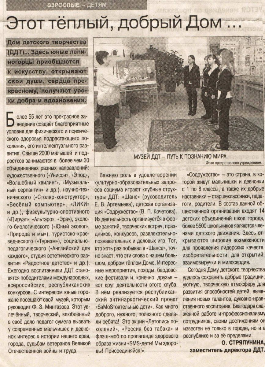 Муниципальное бюджетное учреждение дополнительного образования «Дом детского творчества» муниципального образования «Лениногорский муниципальный район» Республики Татарстан / Татарстан Республикасы «Лениногорск муниципаль районы» муниципаль берәмлеге «Балалар иҗат йорты» муниципаль бюджет өстәмә белем бирү оешмасы