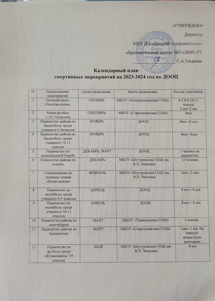 Календарный план спортивных мероприятий на 2019/2020учебный год