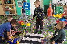 Педагог старшей группы провела с воспитанниками игру-тренинг "Внимание, пешеход!". В занимательной форме воспитанники старшей группы закрепляли знания по правилам дорожного движения. Педагог постаралась привить им умения и навыки правильного поведения на улице, вызвать интерес к движению транспорта и пешеходов, к самому транспорту, уважение к труду водителей транспортных средств, к работе сотрудников ГИБДД.