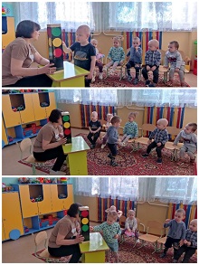 Так важно с самого раннего возраста учить детей правилам дорожного движения, знать основные знаки и сигналы светофора. Поэтому считаем важным провести беседу с детьми «Мой друг - Светофор!». Цель данной беседы: формировать представления детей о назначении светофора, о его сигналах, и правилах дорожного движения. С детками младшей группы изучали цвета и как правильно выглядит светофор. -