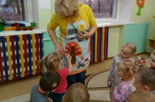 Наиболее полное познание окружающего мира ребёнком происходит через призму доступного и занимательного для него способа переработки информации, то есть с помощью игры. Именно игра положена в основу театрализованной деятельности, подразумевающей импровизацию, оживление предметов, звуков. Сегодня воспитанники средней группы совместно с воспитателем поставили инсценировку "Спор овощей". Ребята постарались проявить артистизм и мастерство перевоплощения.