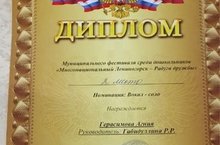 Поздравляем нашу юную звездочку и желаем ей творческих успехов. Также желаем творческих успехов и больше талантливых детей музыкальному руководителю Габидуллину Р.Р., подготовившему воспитанницу к фестивалю.