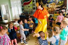 К ребятам в гости приходил персонаж Солнышко, который «принес с собой мешок положительных эмоций». Дети с удовольствием играли с Солнышком, пели песни, рассказывали ему о своем детском саде и даже провели экскурсию. В заключении мероприятия ребята на память Солнышку нарисовали рисунки о своем любимом детском саде.
