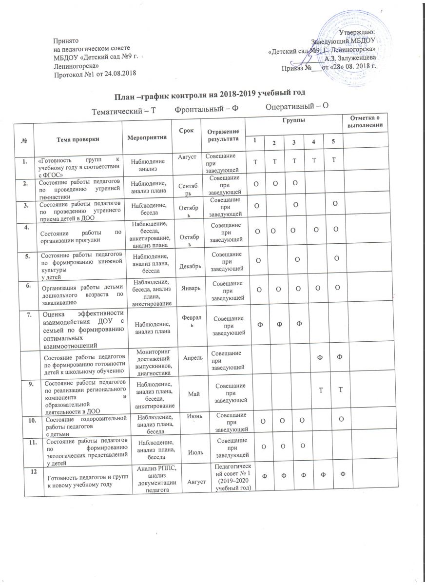 ГОДОВОЙ ПЛАН-ГРАФИК КОНТРОЛЬНОЙ ДЕЯТЕЛЬНОСТИ НА 2020-2021 УЧЕБНЫЙ ГОД