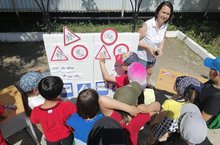 Балалар белән юл хәрәкәте кагыйдәләре турында чираттагы әңгәмә узды.Велосипедта йөрү һәм башка юл кагыйдәләре турында кыска метражлы фильм күрсәтелде.