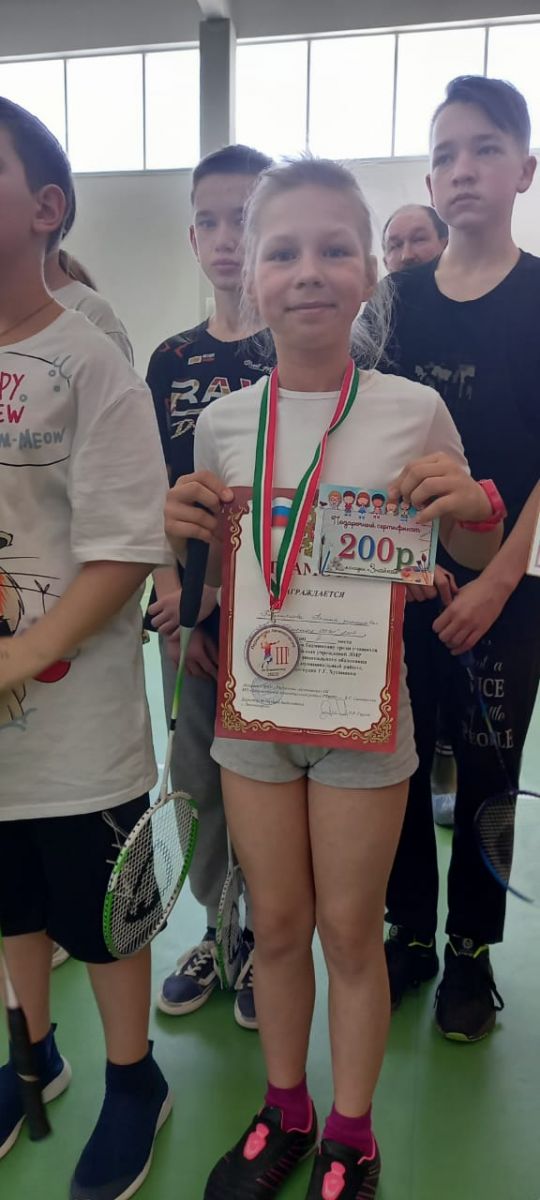 муниципальных соревнованиях по бадминтону Башкирцеву Полину, Шарифуллина Раделя.