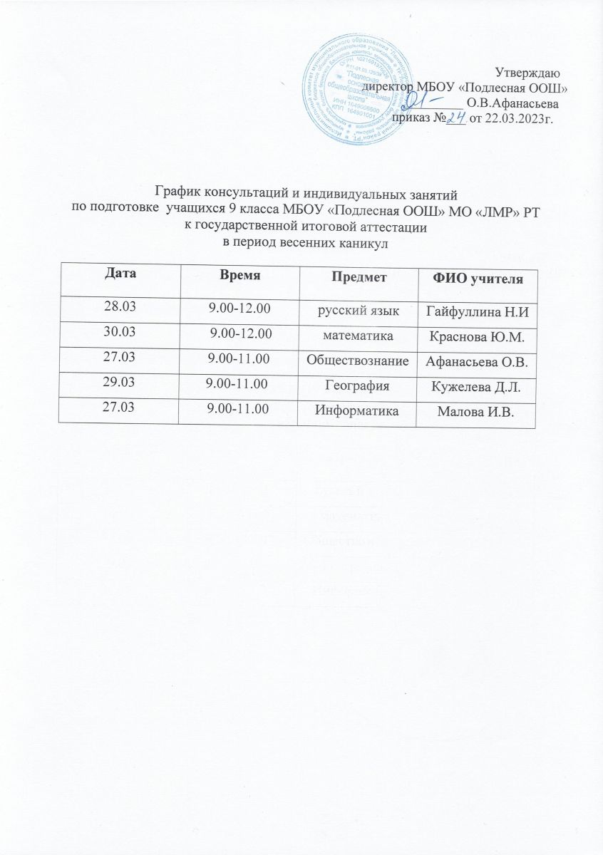 График консультаций по подготовке к ГИА в период весенних каникул