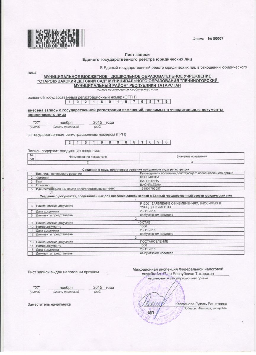 Короткое название: МБДОУ "Старокувакский детский сад" МО "ЛМР" РТ