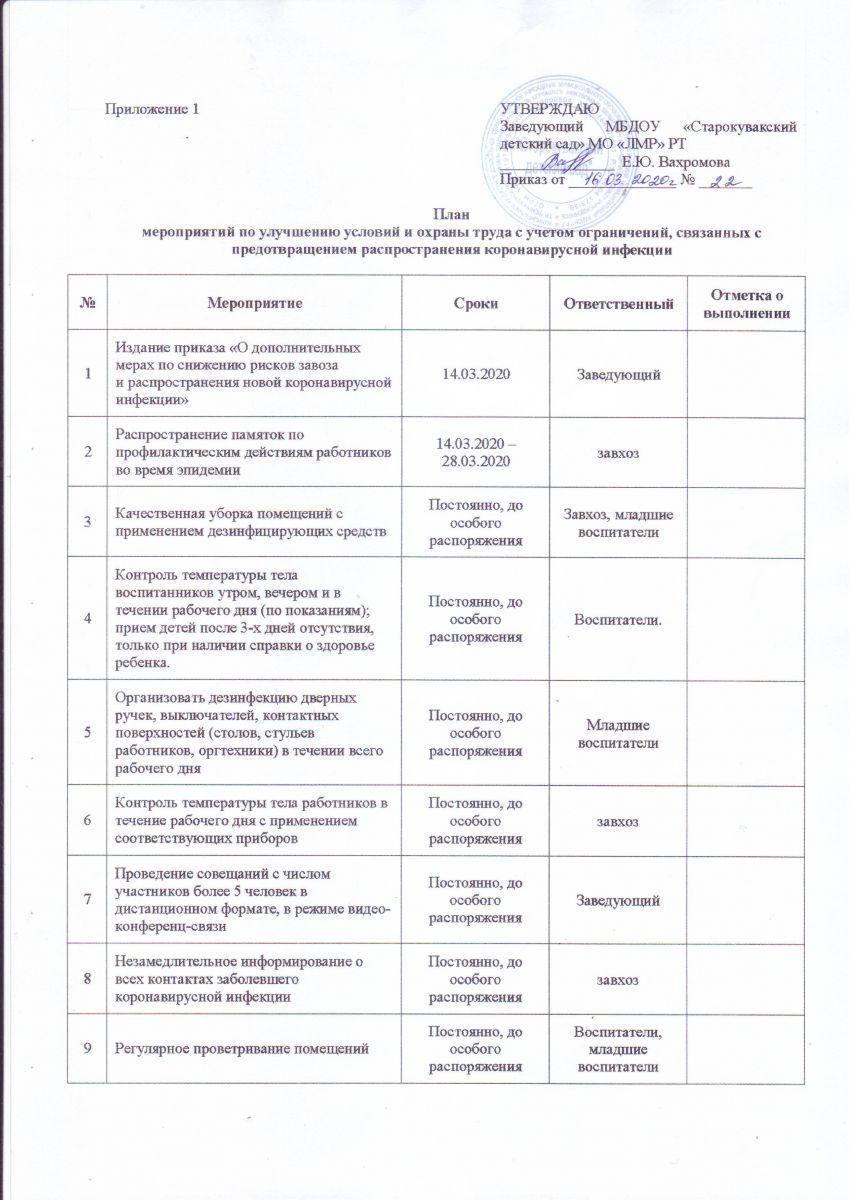 План мероприятий по улучшению условий и охраны труда с учетом ограничений