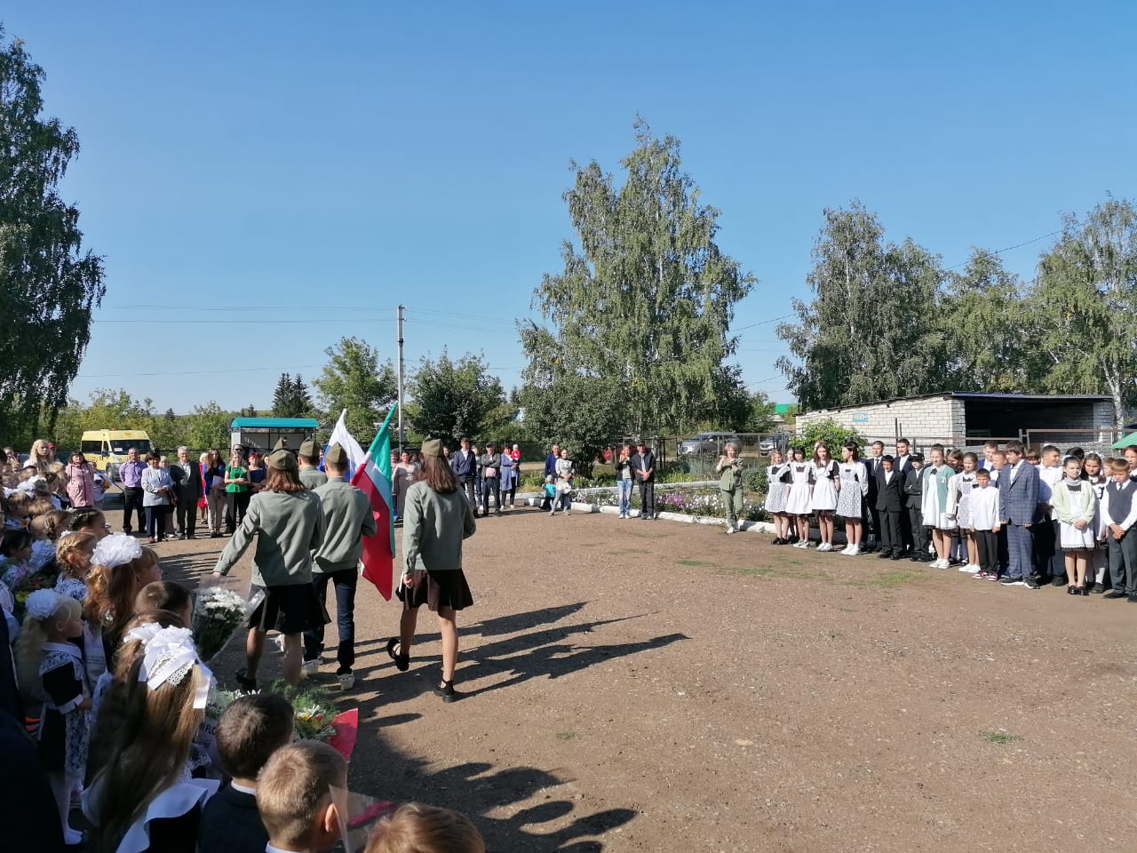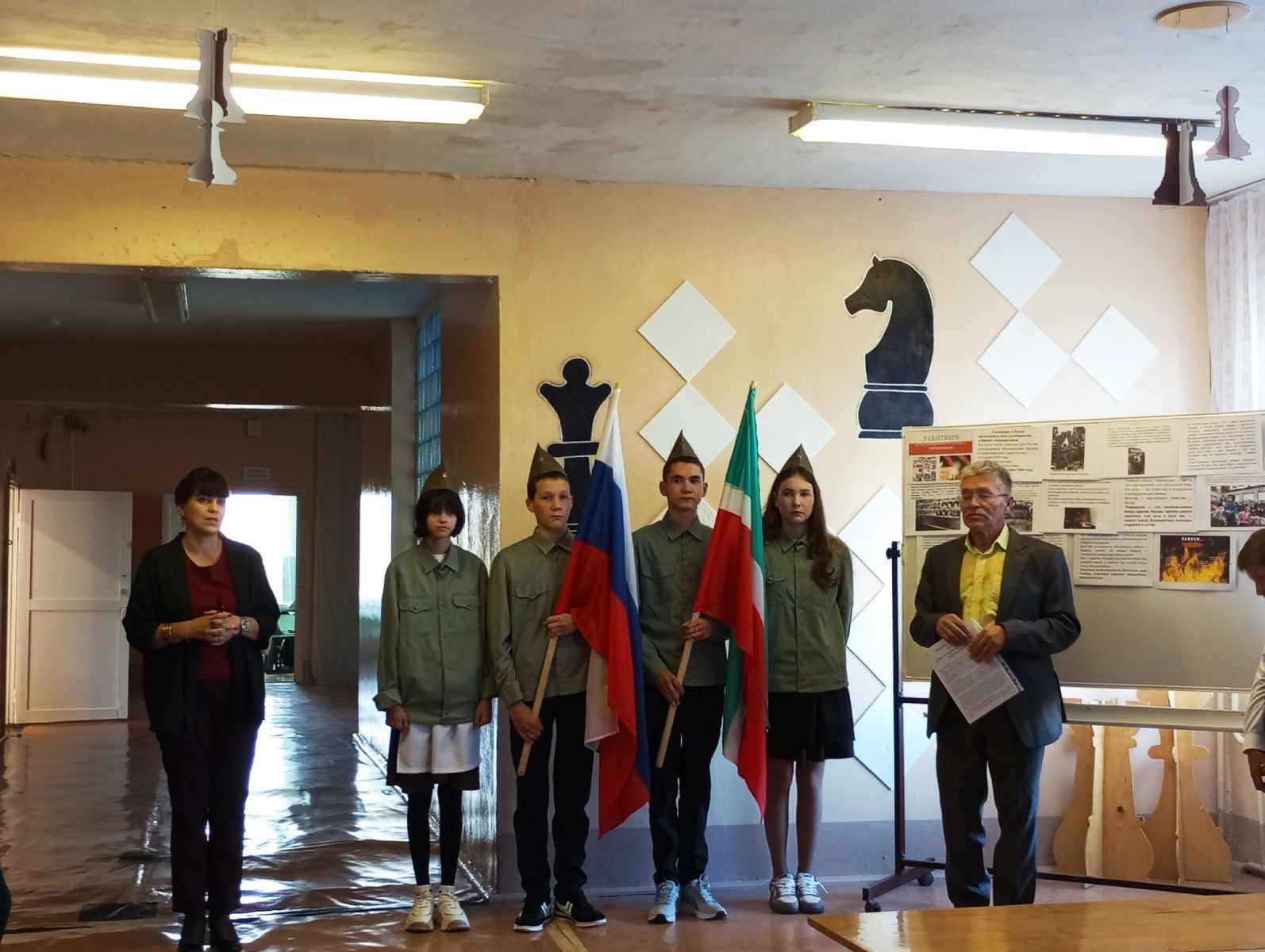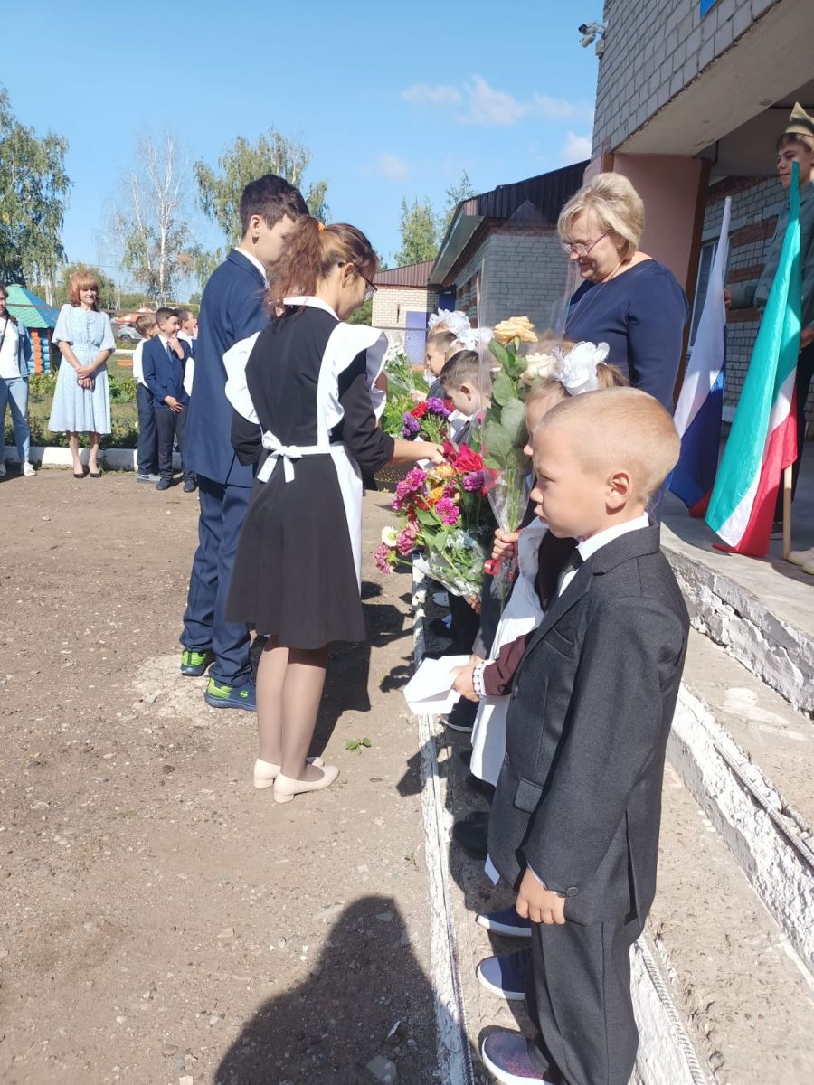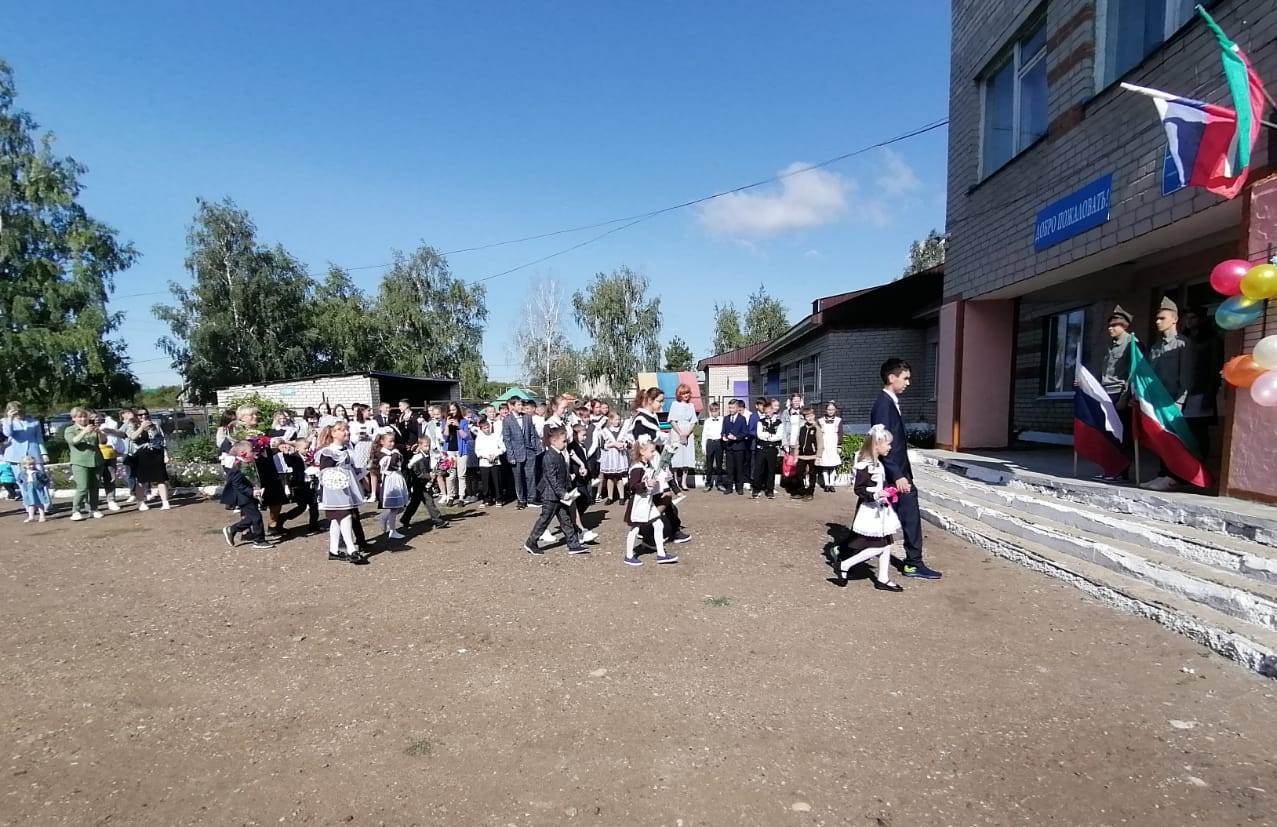 В нашей школе была проведена общешкольная линейка, посвящённая Дню окончания Второй мировой войны и Дню солидарности в борьбе с терроризмом. Линейка началась с выноса флагов РФ и РТ.