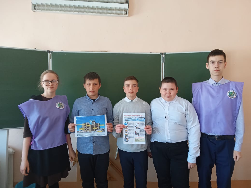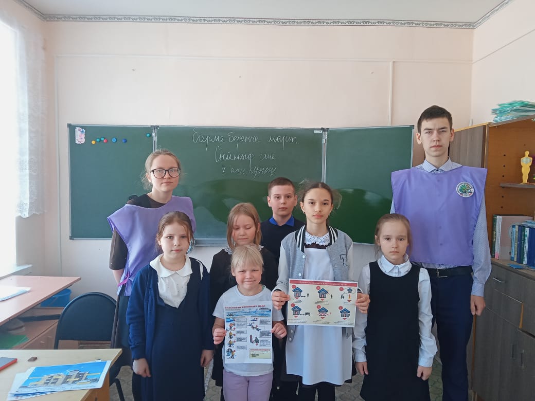 С 19 по 21 марта учащиеся школьного отряда профилактики правонарушений «Профи» провели для учащихся пятиминутки безопасности в период весенних каникул и таяния снега и льда. Напомнили о правилах поведения во время весеннего паводка, ледохода, схода снега и сосулек с крыш, раздали школьникам памятки.